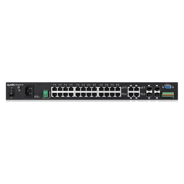 28: 24 х 100/1000 GbE BASE-T, фіксовані 4 х Combo GbE (GbE/FE)